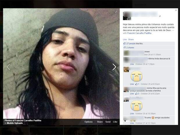 Francine Carvalho Padilha foi encontrada morta no dia 25 de outubro, na casa onde o casal morava, no bairro Salomé. O local funcionava como ponto para venda de drogas. Alexandre Faustino não foi encontrado no local. Porém, horas depois do crime, deu entrada no Hospital Cristo Redentor com dois tiros. A polícia ainda investiga as causas do atentado ao suspeito. Faustino confessou o crime após ser interrogado pela polícia, e deve ser encaminhado ao Presídio Central da Capital.