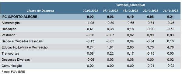 Além de Porto Alegre, o IPC-S subiu em outras cinco das sete capitais pesquisadas pela FGV na última semana de outubro.