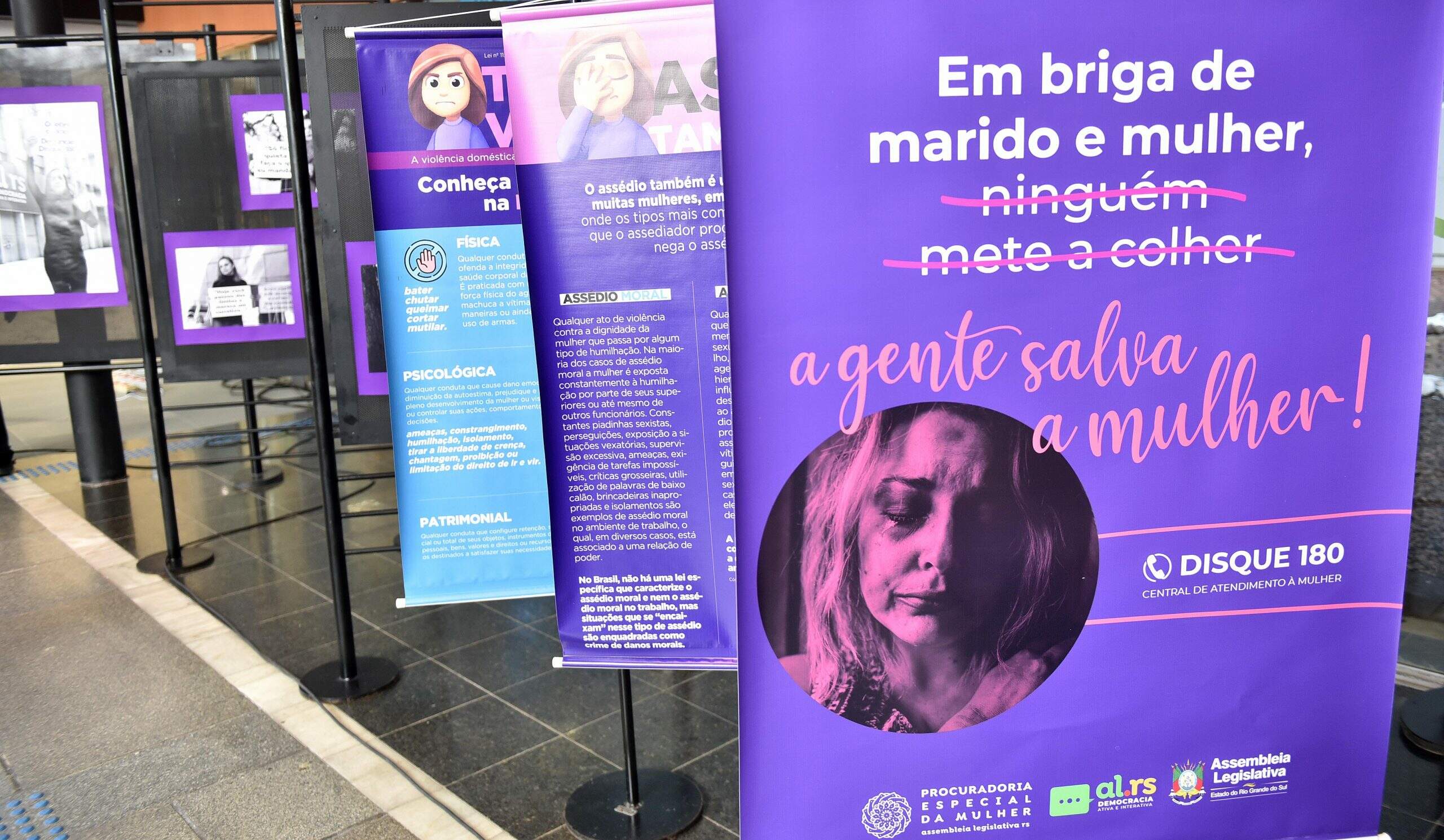 Foto: Vinícius Reis/ALRSNesta terça-feira (03), durante a abertura oficial da exposição #BastadeViolência Contra as Mulheres, no Espaço Carlos Santos, na entrada do Palácio Farroupilha, em Porto Alegre, a Procuradoria Especial da Mulher da Assembleia Legislativa do RS anunciou um novo canal para denúncias de violência.