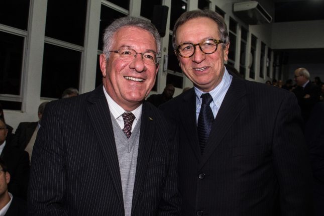 Porto Alegre 20.07.15 – Vice-presidente da GM do Brasil, Marcos Munhoz e o Vice-presidente da rede Pampa , Paulo Sérgio Pinto.. Celebração do aniversário de 15 anos da GM em Gravataí, Câmara de vereadores de Gravataí – FOTO – Jackson Ciceri
