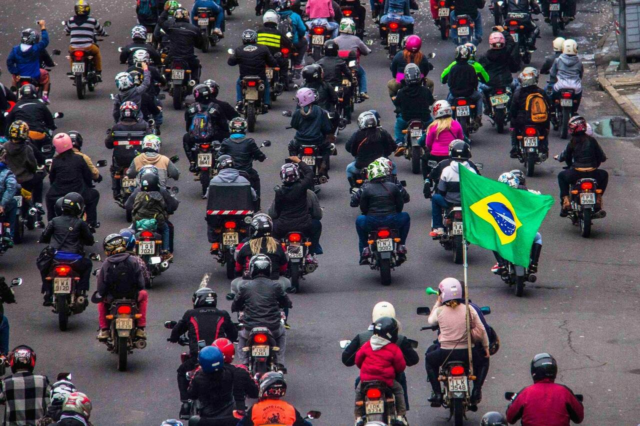 Porto Alegre – Procissão de motos, motoqueiros, para celebrar o dia de Nossa Senhora Aparecida, na capital. FOTO – Jackson Ciceri