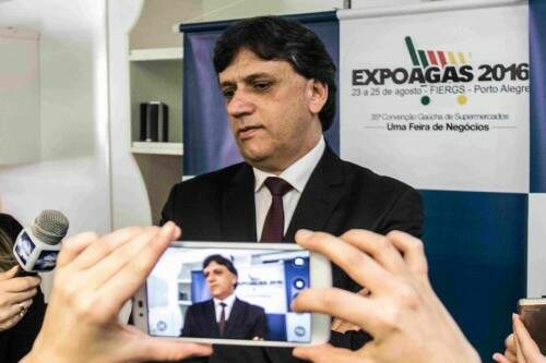 Porto legre 2016 – Expoagas 2015 . Presidente da Agas, Antonio Cesa longo, divulga o balnço da feira . – FOTO – Jackson Ciceri