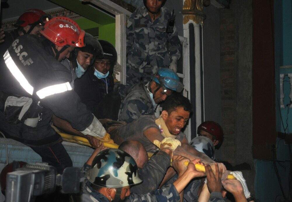 Após cinco horas, socorristas nepaleses e franceses retiraram um homem de 28 anos dos escombros de um prédio residencial em Katmandu. Rishi Khanal passou mais de 80 horas em um quarto com três mortos. “Ele parece ter sobrevivido por pura força de vontade”, disse o médico Akhilesh Shrestha.