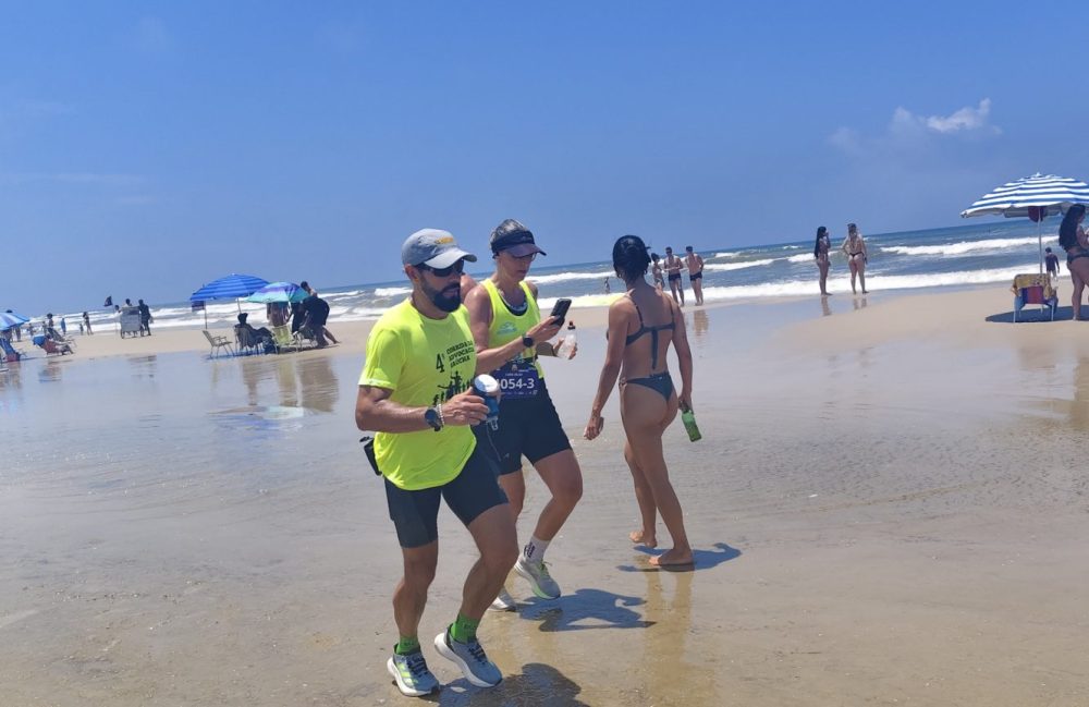 O litoral norte gaúcho amanheceu em festa no sábado (17). Às 6h da manhã, os ultramaratonistas da UlTTTra (84,4 km) foram os primeiros a deixar a Ponte do Passo de Torres. O sol já iluminava o horizonte e a temperatura rondava os 27 °C, enquanto o vento contra soprava firme em trechos longos da praia. A areia molhada tornava cada passada mais pesada, e os banhistas que aproveitavam o domingo de verão se transformaram em torcida espontânea, vibrando com a passagem dos atletas rumo a Imbé.