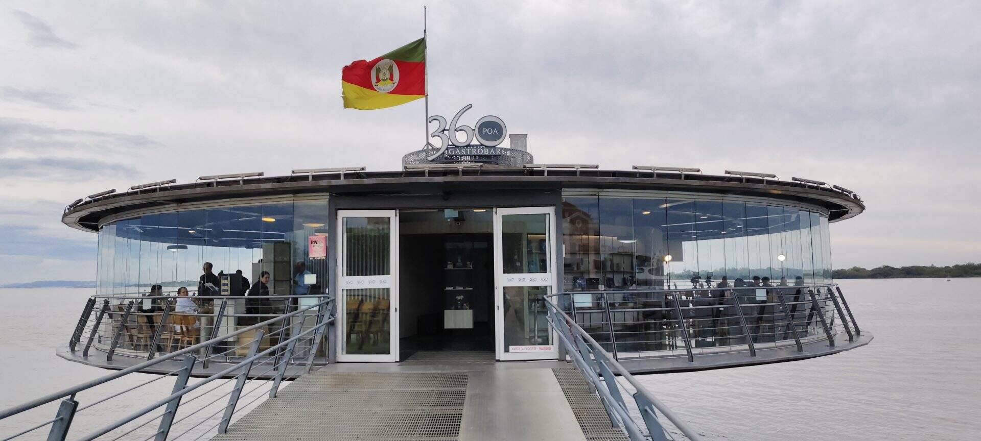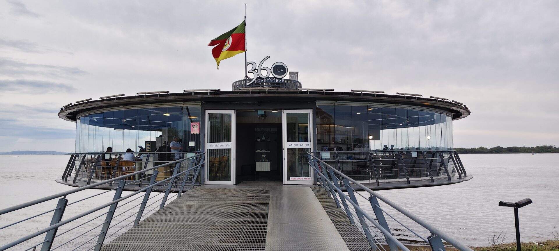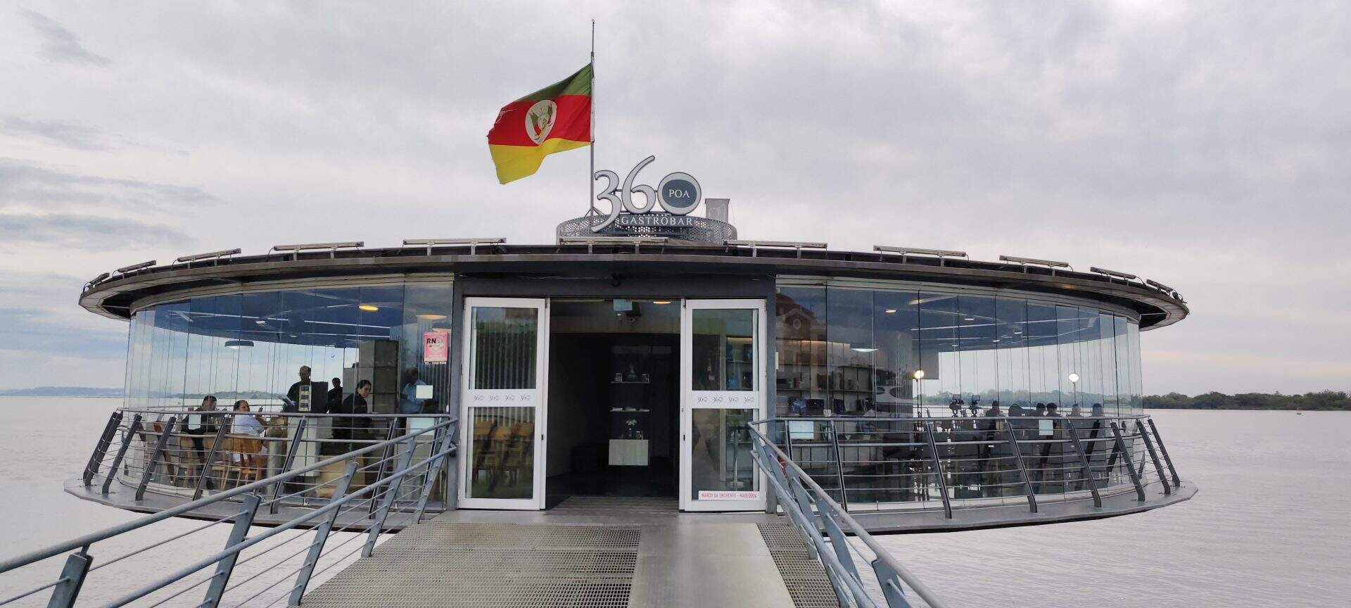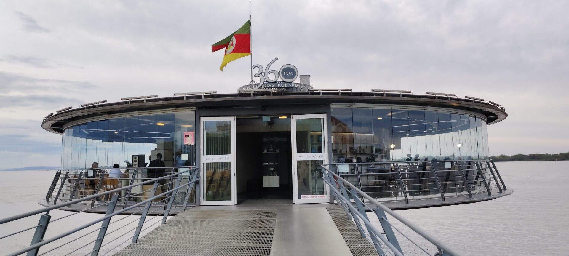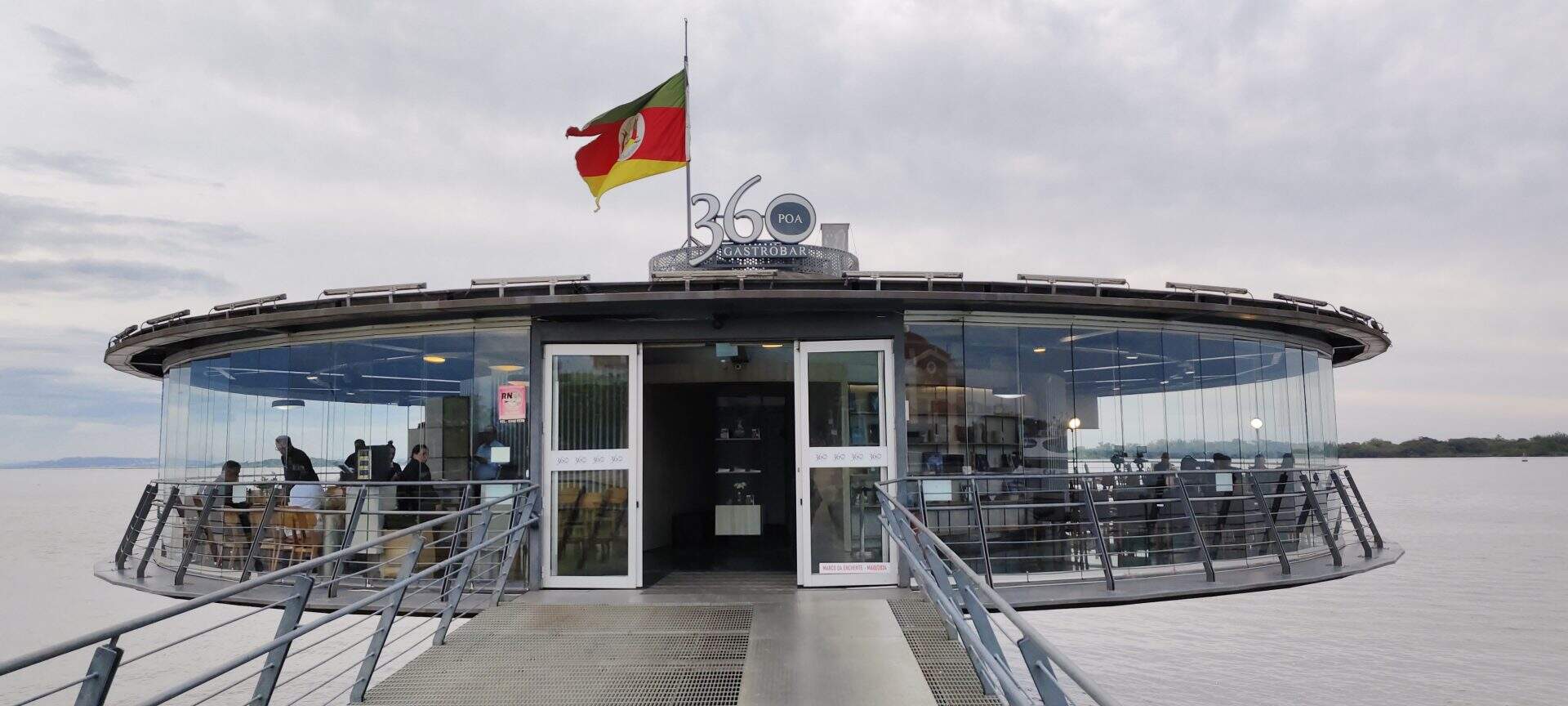 Mais do que um restaurante, o 360 é um marco urbano e turístico. A estrutura envidraçada que avança sobre as águas proporciona uma vista panorâmica do Guaíba, com o Gasômetro como referencial histórico e o pôr do sol como espetáculo diário. O ambiente interno acomoda até 120 pessoas, enquanto o lounge externo — com gramado, pergolado e área pet-friendly — recebe até 150 convidados, ideal para eventos corporativos, aniversários e casamentos.