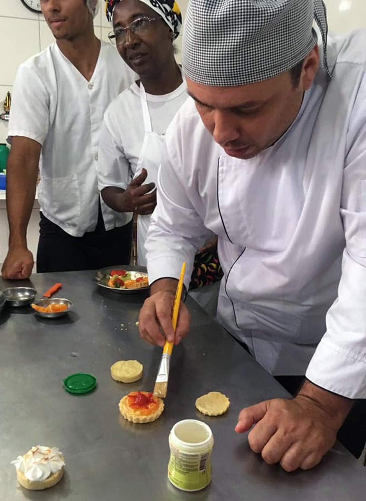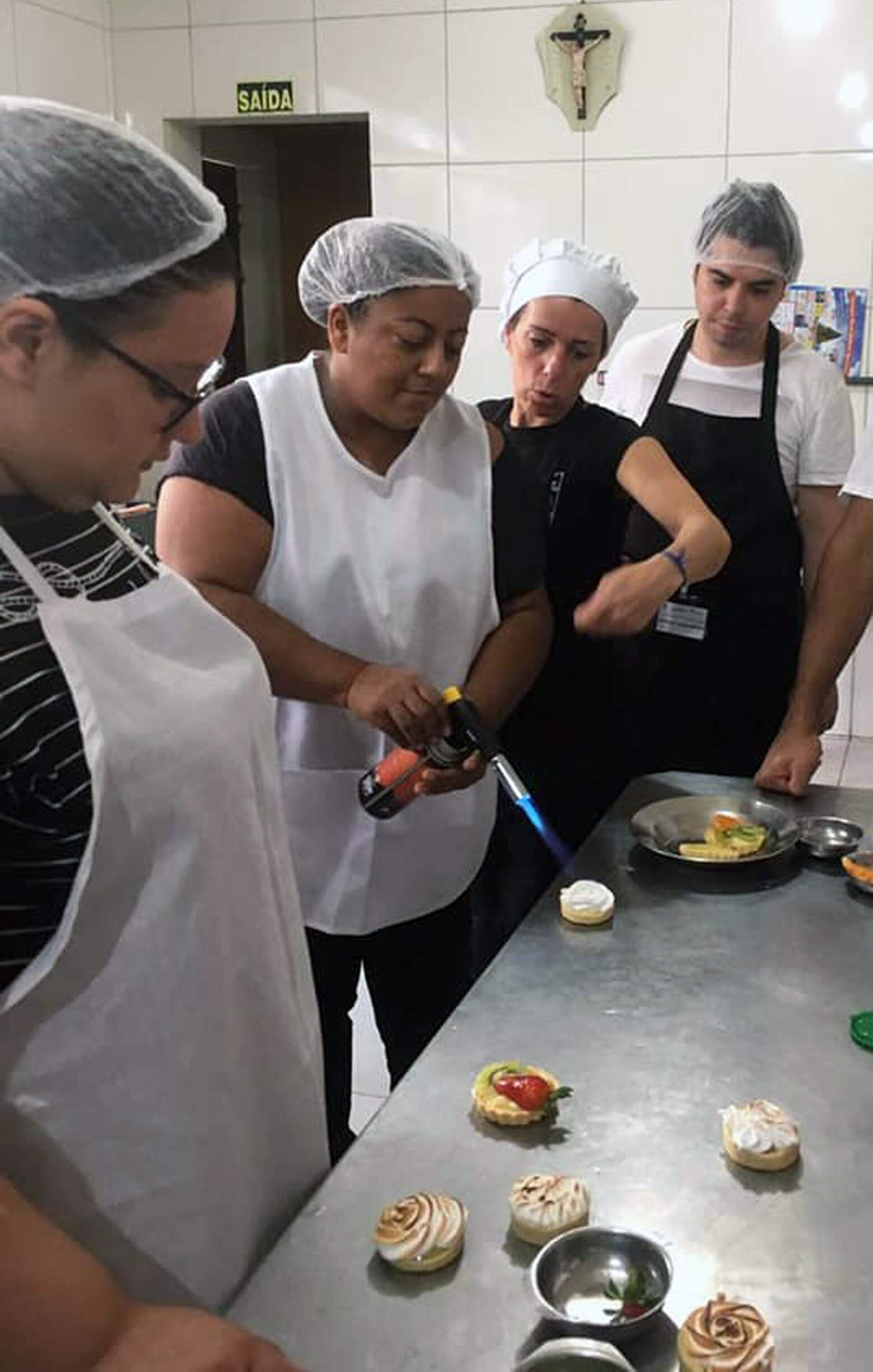 A segunda turma, formada por jovens, adultos e terceira idade, se reuniu todas as segundas, terças e quartas pela tarde, de setembro a novembro, e recebeu ensinamentos teóricos e práticos sobre culinária, alta gastronomia, serviço e nutrição. Os professores foram o chef de cozinha italiano Jacopo Carandini, a nutricionista Raquel Leal, a confeiteira Pâmella Petersen e o maître Valmir Grossini. “Não foi um caminho muito fácil para essa gurizada, pois exigiu dedicação e muito estudo. Mas eles chegaram lá”, afirma Claudionir Ceron, diretor do Centro Social Pe. Pedro Leonardi.