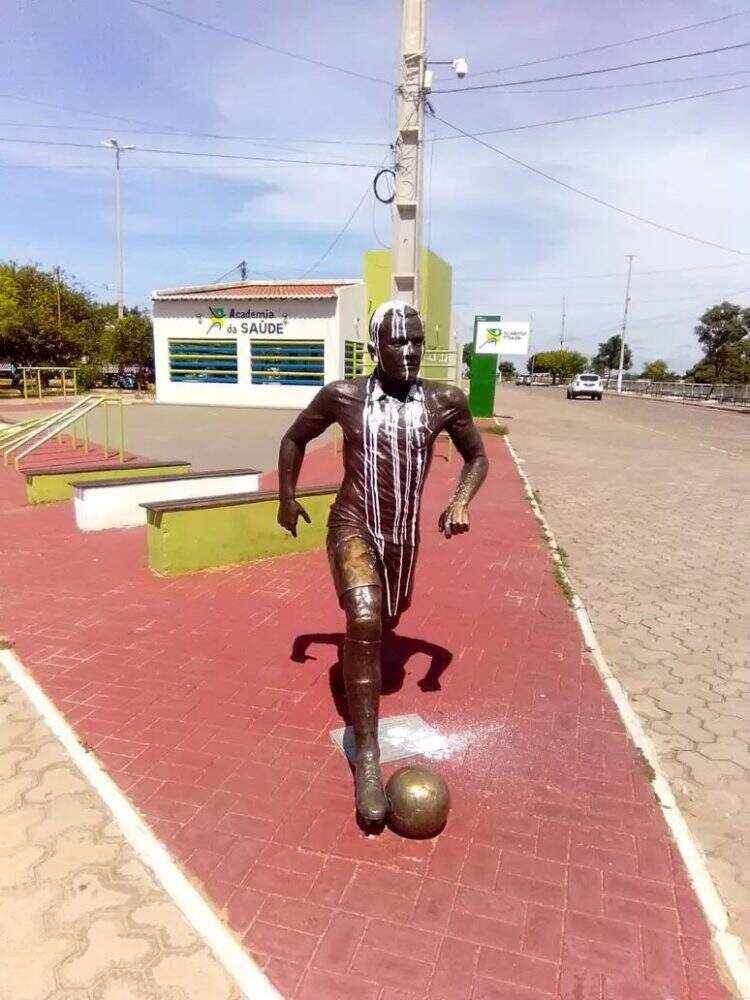 A estátua em homenagem ao ex-jogador Daniel Alves em sua terra natal, Juazeiro (BA), amanheceu coberta por tinta branca nesta quarta-feira (28). É a terceira vez que ela é alvo de protestos. Não há câmeras de segurança no local, nem suspeitos. A ação ocorreu de madrugada.
