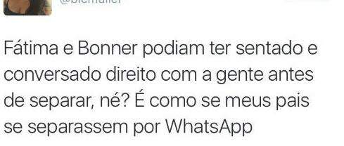 Pouquíssimos minutos depois que William Bonner e Fátima Bernardes anunciaram, pelo Twitter, o fim do casamento de 26 anos, internautas começaram a publicar memes em torno do assunto. Confira: