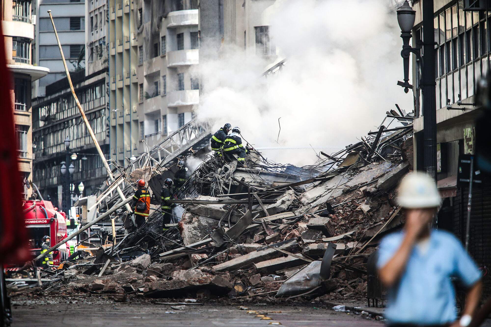 No sexto dia de buscas nos escombros do prédio que incendiou e desabou em São Paulo, os bombeiros encontraram novos restos mortais