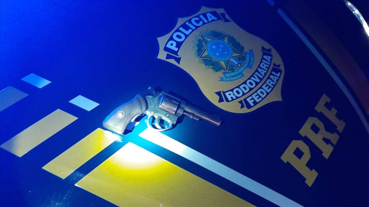 A situação havia sido denunciada à PRF por meio do telefone de emergência 191, motivando três agentes a se deslocarem a bordo de uma viatura até o ponto indicado. Perto dali, na entrada de um sítio, a dupla de suspeitos foi vista em um carro Chevette e passou por abordagem, com a identificação da posse irregular do revólver.