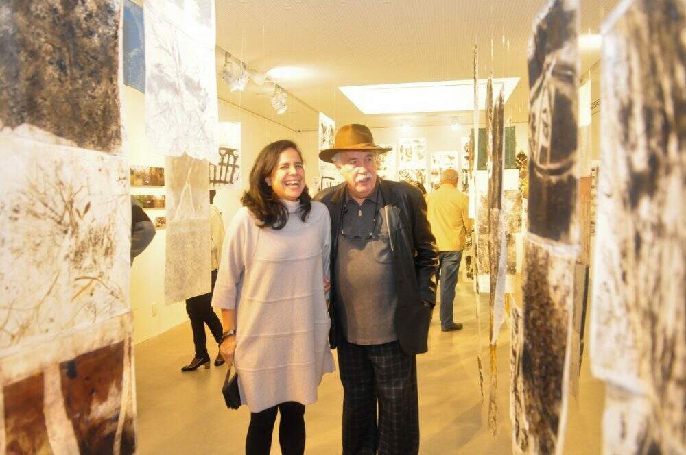 Mauren Motta e Rogerio Correa da Silva estiveram atentos às obras de Vergara. Foto: Livia Stumpf/Especial
