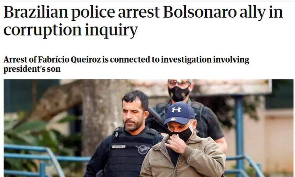 O jornal britânico The Guardian destacou: “Polícia brasileira prende aliado de Bolsonaro em inquérito sobre corrupção”. A publicação menciona que a detenção de Queiroz está associada a uma investigação envolvendo o filho do presidente do Brasil. Descreveu ainda o ex-assessor como “amigo de longa data” da família Bolsonaro.