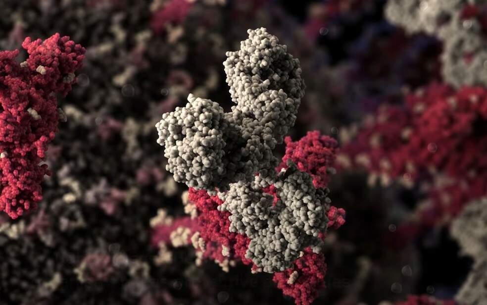 Modelo 3D do Sars-Cov-2, o novo coroavírus, com zoom na proteína Spike.