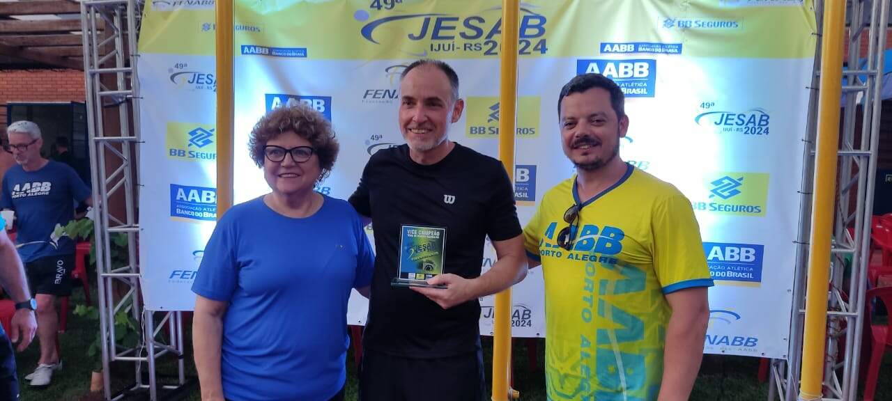 Foto: Divulgação AABB Porto AlegreA competição reuniu 982 representantes de 39 AABBs com 170 equipes, disputando 21 modalidades, em Ijuí, no último final de semana. Na categoria beach tennis livre misto, os vencedores foram pai e filho, Carlos Cesar Araújo Filho e Guilherme Kuser Araújo. O segundo lugar ficou com a AABB Taquari, representada por Fernando Renner dos Santos e Ricardo Schuler de Souza.