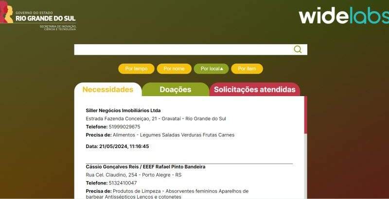Foto: DivulgaçãoOs abrigos e as instituições dedicados a atender a população atingida pelas inundações de abril e maio no Rio Grande do Sul já começaram a receber as doações cadastradas na plataforma Solidariedade RS. A iniciativa foi desenvolvida de forma gratuita pela startup WideLabs e tem parceria do governo estadual, por meio da Sict (Secretaria de Inovação, Ciência e Tecnologia). A plataforma também está disponível no site SOS Enchentes.