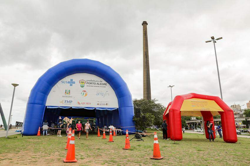 Vacinação contra o coronavírus ocorreu no trecho 1 da Orla do Guaíba, ao lado da Usina do Gasômetro.