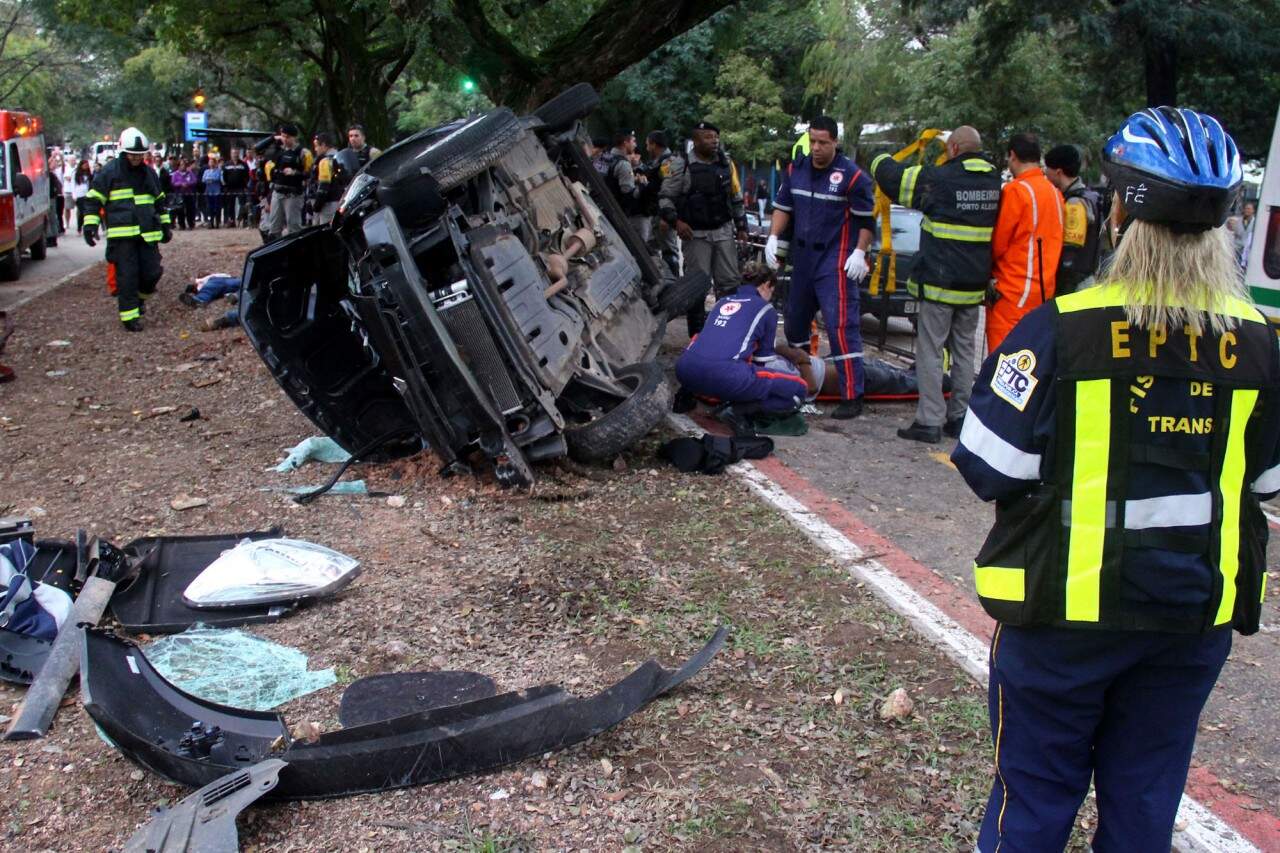 Após roubarem um veículo na João Manoel, no Centro Histórico, atropelarem uma motociclitas e capotarem o carro no bairro Menino Deus, três suspeitos, sendo um deles menor de idade, foram detidos nesta sexta-feira por policiais militares em frente ao ginásio Tesourinha, na avenida Erico Verissimo. FOTO: LUCAS UEBEL