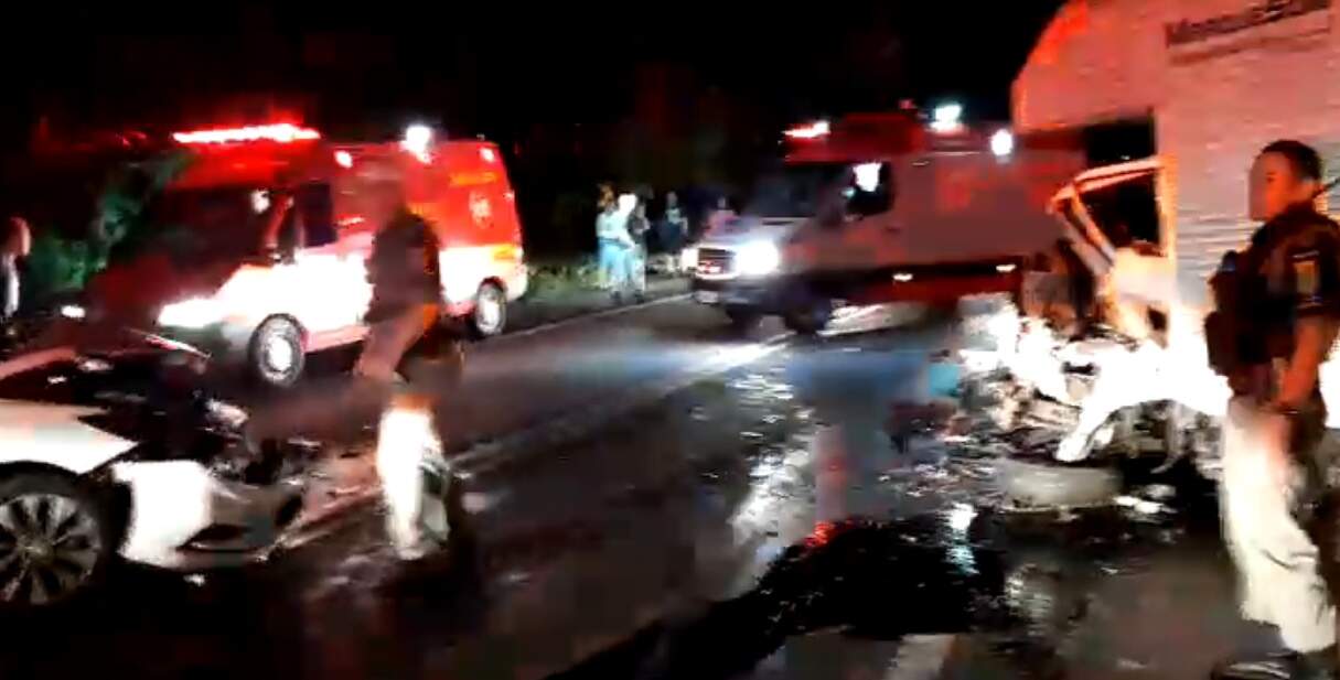 Um acidente deixou a pista totalmente bloqueada por alguns instantes, na noite desta sexta-feira (10), no km 228 da BR 116, no município de Dois Irmãos. Conforme a Polícia Rodoviária Federal, houve uma colisão frontal entre um carro e um caminhão de pequeno porte. As vítimas ficaram lesionadas e ambulâncias fizeram o atendimento.