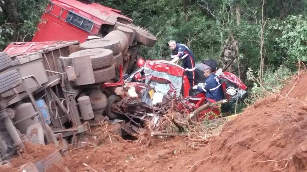 Duas pessoas morreram em um acidente envolvendo um automóvel e uma carreta em Condor, na BR-158, na Região das Missões, na manhã deste domingo (15).