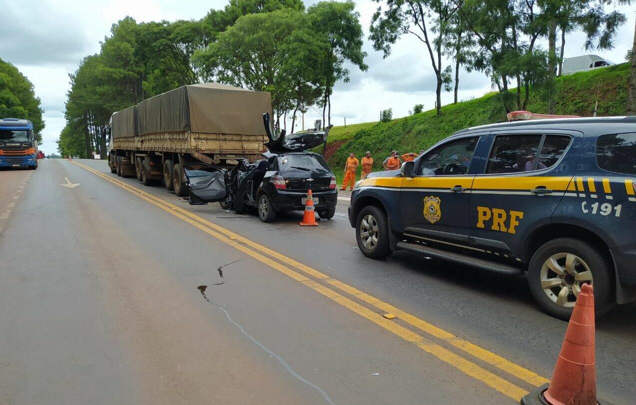 Foto: Divulgação/PRFA PRF (Polícia Rodoviária Federal) atendeu, por volta das 12h15 de terça-feira (2), no km 417 da BR 285, em Panambi, um grave acidente envolvendo um automóvel e uma carreta. Duas pessoas morreram e três ficaram feridas.