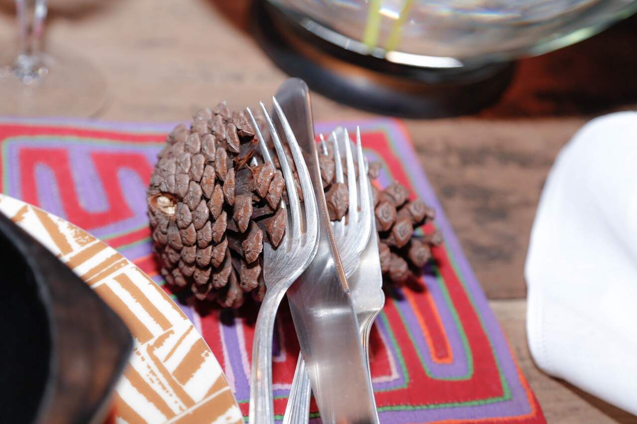 No detalhe: originalidade dos talheres colocados na pinha. (Foto: Lenara Petenuzzo/especial)