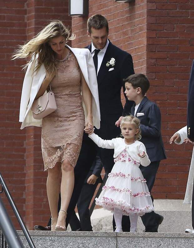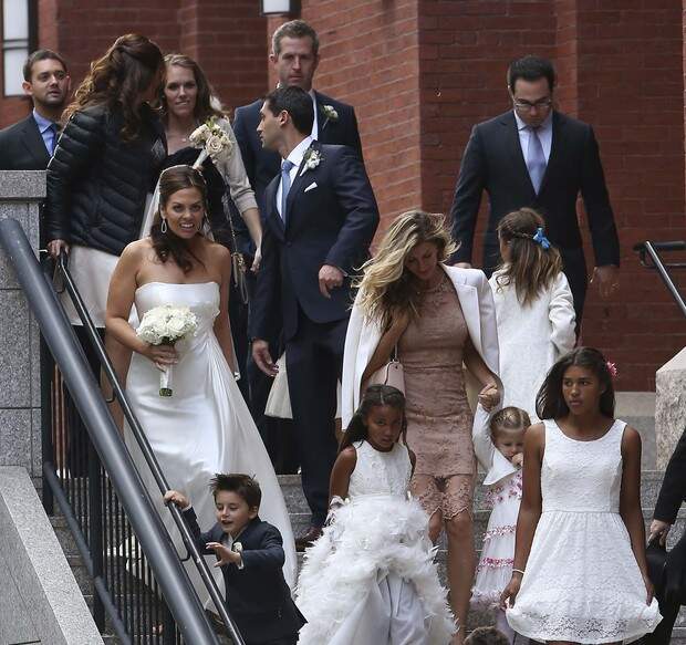 Gisele Bündchen e Tom Brady tiveram um compromisso com a família do jogador neste domingo (4). O casal prestigiou o casamento de Nancy Brady, cunhada da modelo gaúcha, que aconteceu em Boston, cidade onde eles moram.