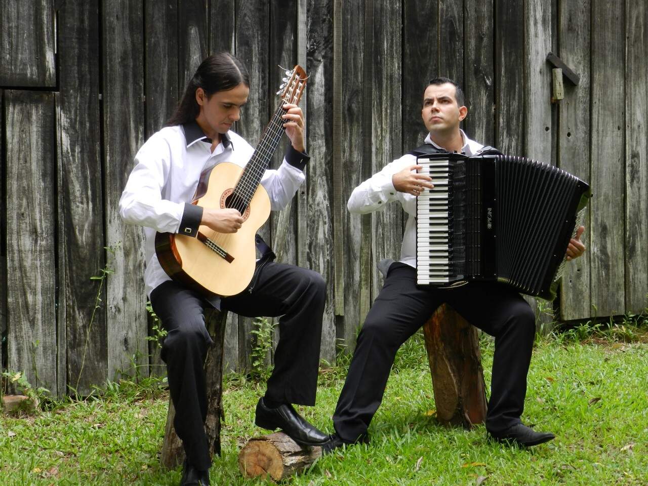 O acordeonista Daniel Castilhos e o violonista Lucas Araújo têm um repertório que busca valorizar compositores latino-americanos de diferentes épocas e realizam pesquisa e produção de arranjos inéditos pela dificuldade em encontrar peças originais.