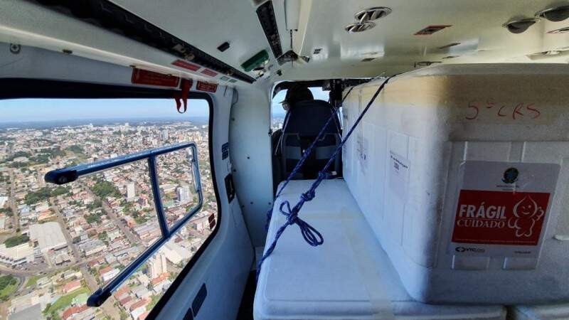 Foto: Grégori Bertó/SSPA esperança por dias melhores neste momento de pandemia chegou pelo ar em municípios do interior do Estado. Nesta terça-feira (19), três aeronaves de instituições da SSP (Secretaria da Segurança Pública) apoiaram o transporte dos primeiros lotes da vacina contra a Covid-19 para Caxias do Sul, Carazinho, Erechim, Palmeira das Missões e Santo Ângelo. As 37.480 doses são parte das 341,8 mil recebidas pelo Estado.