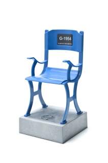 A réplica em miniatura das antigas cadeiras do Estádio Olímpico, um dos itens mais procurados pela torcida tricolor, está disponível na Grêmio Mania. (Foto: divulgação)