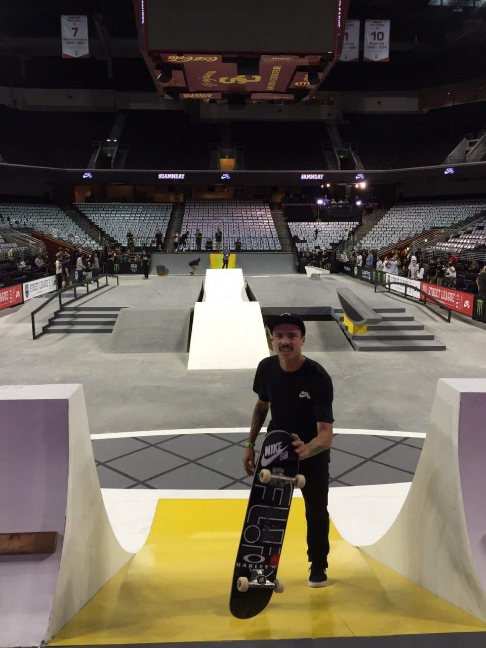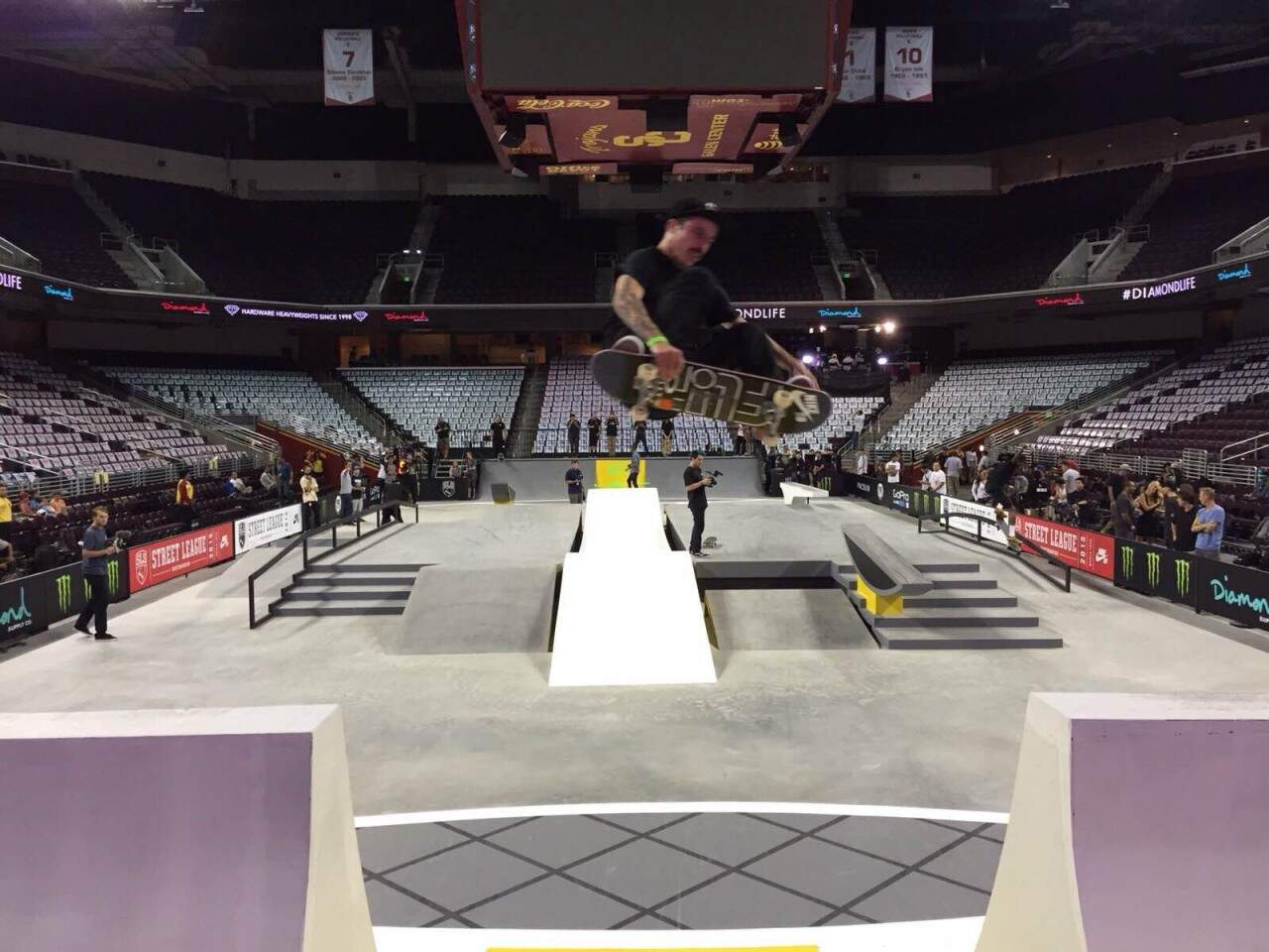 O skatista gaúcho Luan Oliveira participa do Street League Skateboarding, no Galen Center – Ginásio de Esportes da Universidade do Sul da Califórnia, nos EUA. Foto: Divulgação