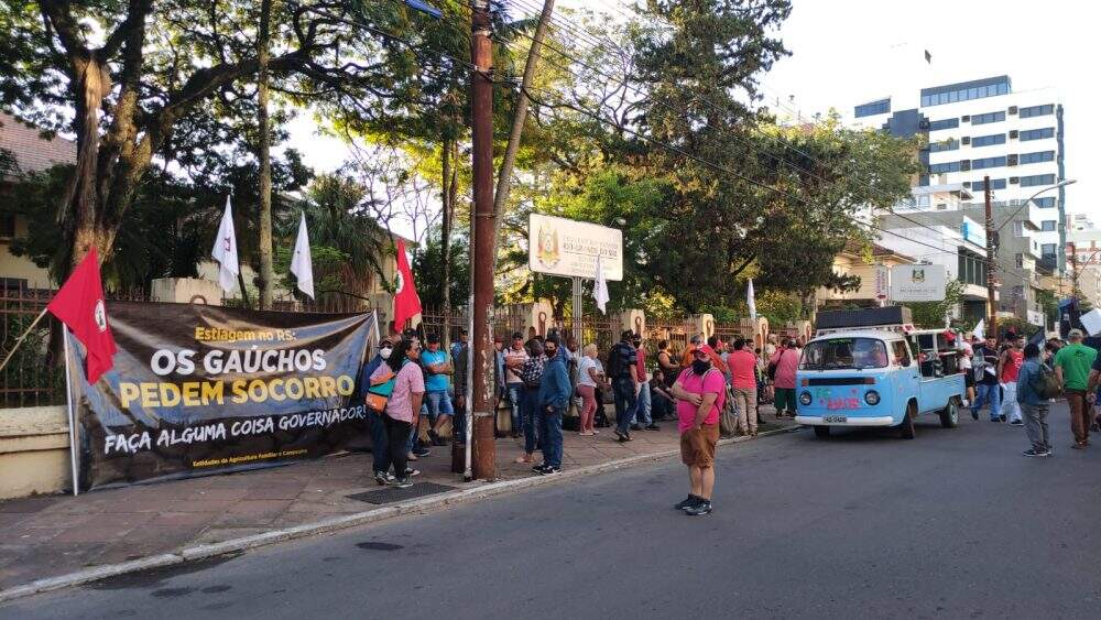 Agricultores familiares realizaram, na manhã desta quarta-feira (16), uma manifestação em frente à Secretaria da Agricultura, Pecuária e Desenvolvimento Rural do RS, em Porto Alegre, para pedir ações urgentes dos governos estadual e federal para minimizar os efeitos da estiagem.