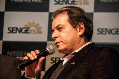 Porto Alegre 2016 – Semináro Agricultura,.desenvolvimento e combate à crise, realizado pelo SENGE RS , na PUC. Presidente do SENGE RS Alexandre Wollmann. Pampa Debates, com Paulo Sérgio Pinto. – FOTO – Jackson Ciceri