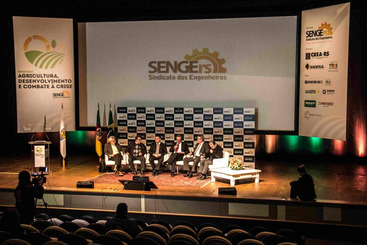 Porto Alegre 2016 – Semináro Agricultura,.desenvolvimento e combate à crise, realizado pelo SENGE RS , na PUC. Presidente do SENGE RS Alexandre Wollmann. Pampa Debates, com Paulo Sérgio Pinto. – FOTO – Jackson Ciceri