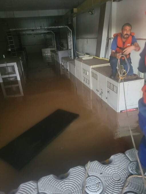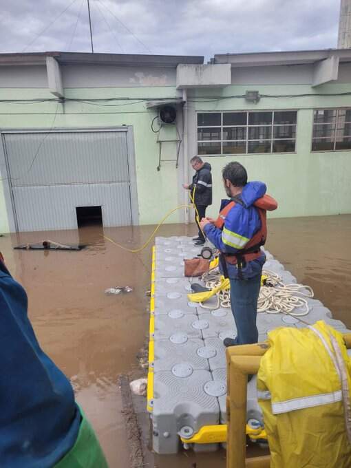 Equipes do Dmae drenam a água do poço onde ficam os motores da Estação Moinhos de Vento. (Foto: Dmae/Divulgação)