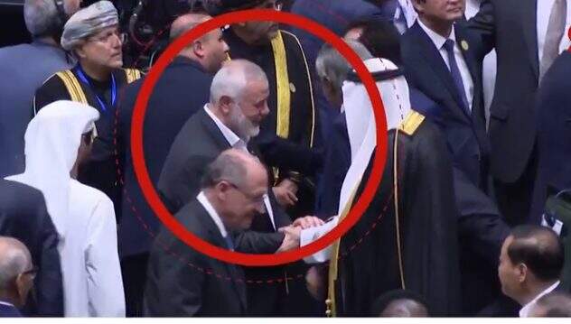Foto: Reprodução de vídeoO vice-presidente da República, Geraldo Alckmin, ficou ao lado do chefe do Hamas, Ismail Haniyeh, durante a posse do novo presidente do Irã, Masoud Pezeshkian, na terça-feira (30), em Teerã.