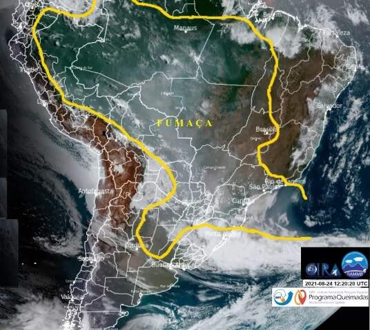 Imagem de satélite mostra fumaça avançando da região da Amazônia até o sul e sudeste do País.