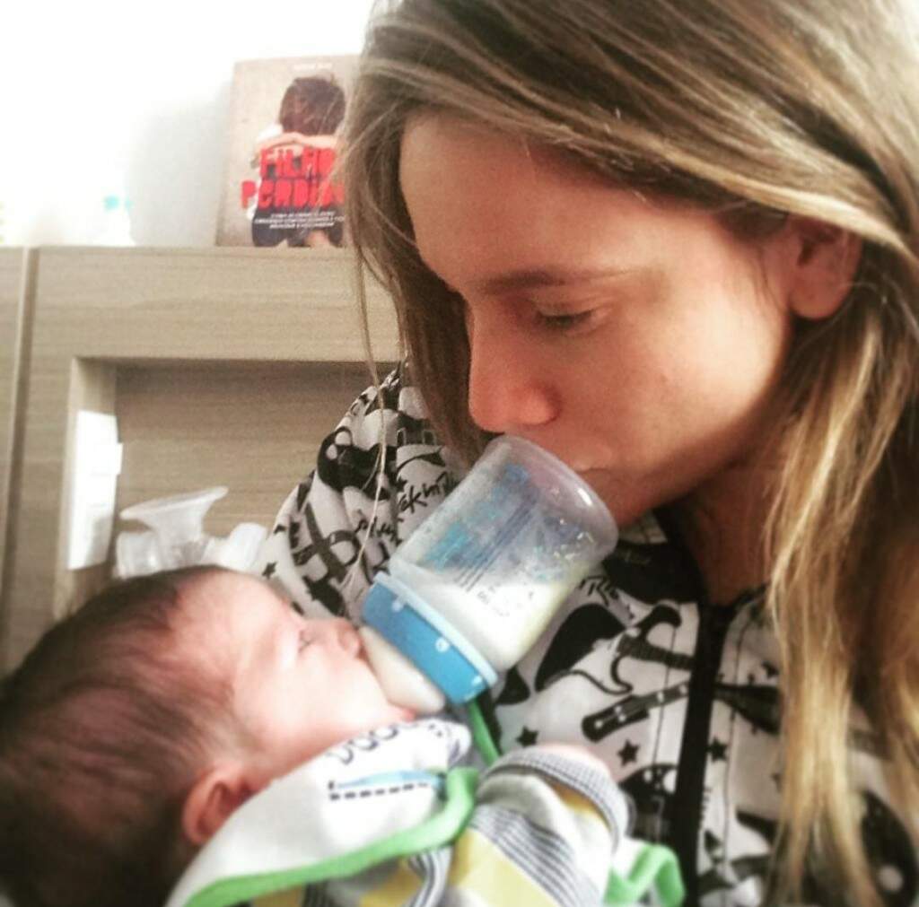 O meu sofrimento durou até eu dar a primeira mamadeira. Foi quando descobri duas coisas: eles também olham no nosso olho e a mãozinha também segura o nosso dedo quando mamam na ‘dedêra’. Descobri também que esse é um assunto polêmico e não estou aqui para polemizar. Se eu posso usar minha imagem para ajudar minimamente que seja, escrevo por isso – principalmente para mulheres na mesma situação que eu. E se você é uma delas, aí vai a minha terceira e melhor descoberta: o amor que bate no peito, bate também na mamadeira.” (AD)