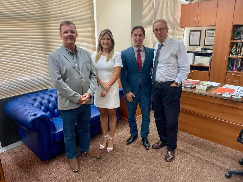 O vice-presidente da Rede Pampa, Paulo Sérgio Pinto, recebeu a visita institucional do novo presidente da Associação do Ministério Público do Rio Grande do Sul (AMP/RS), Dr. Fernando Andrade Alves, acompanhado da vice-presidente de Relações Institucionais, Dra. Karine Camargo Teixeira, nesta terça-feira (4), na sede do grupo de comunicação, em Porto Alegre. Durante o encontro, os representantes discutiram os desafios do atual mandato e as metas para o fortalecimento da carreira no Ministério Público gaúcho.