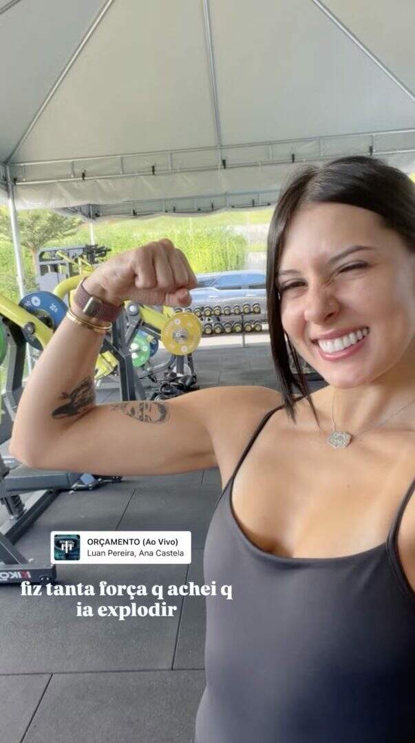Foto: Reprodução/InstagramAna Castela, de 22 anos, voltou a movimentar as redes sociais, no último domingo (21), ao mostrar o muque após um treino pesado. Em um clique, a cantora sertaneja aparece sorridente, fazendo força e exibindo o braço definido. Na legenda, ela brincou com o esforço do exercício: “Fiz tanta força que achei que ia explodir.”