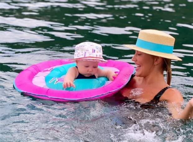 Foto: Reprodução/InstagramAna Paula Siebert publicou fotos e vídeos no Instagram neste domingo (13) para registrar o primeiro banho de mar da filha, Vicky, de quase sete meses de idade, do casamento com Roberto Justus. Nas imagens, a pequena aparece com uma boia.