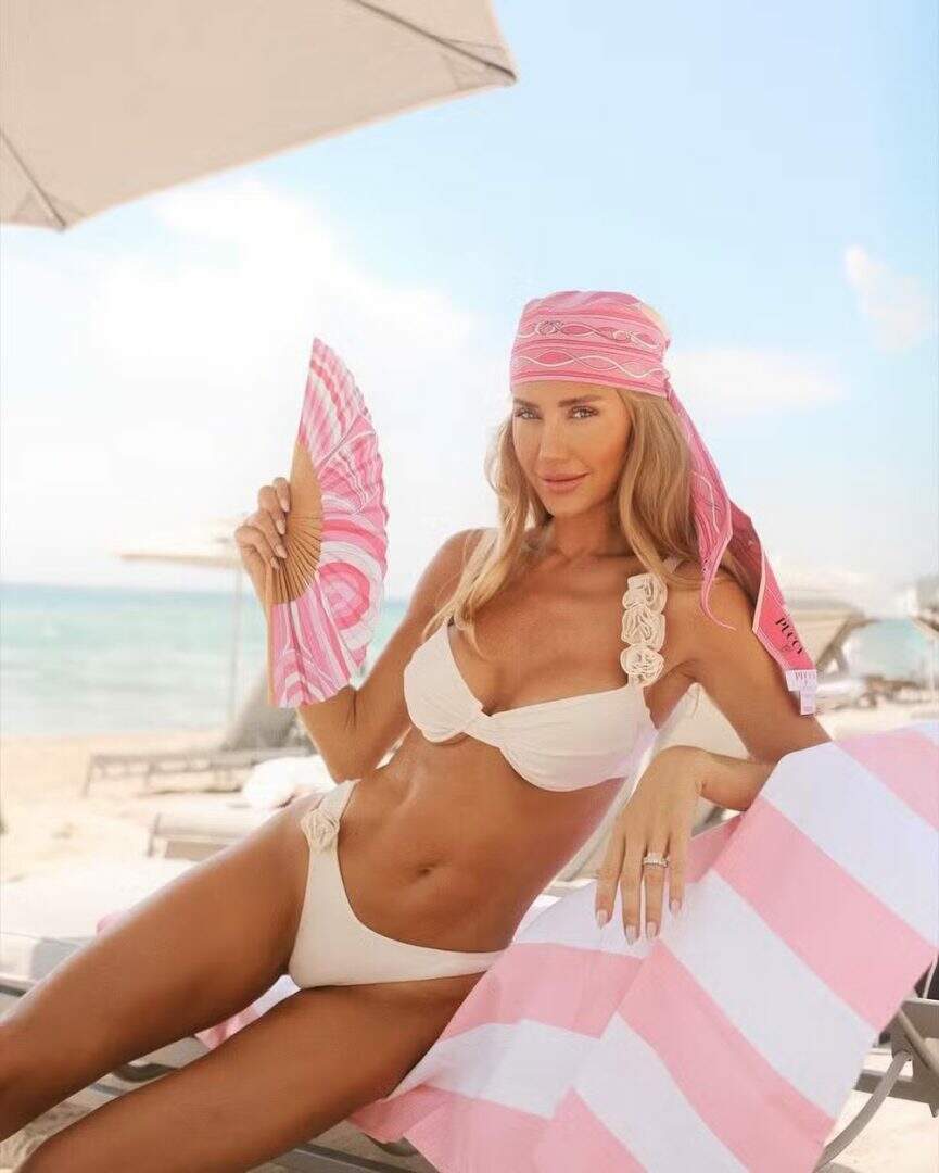 Foto: Reprodução/InstagramAna Paula Siebert continua de férias em Miami, na Flórida (EUA), onde ela e Roberto Justus têm um apartamento de frente para a praia e, nesta quarta-feira (9), a influenciadora de 37 anos aproveitou para atualizar o bronzeado de biquíni branco. Com acessórios cor-de-rosa da Pucci, Ana Paula registrou o momento em seu Instagram.