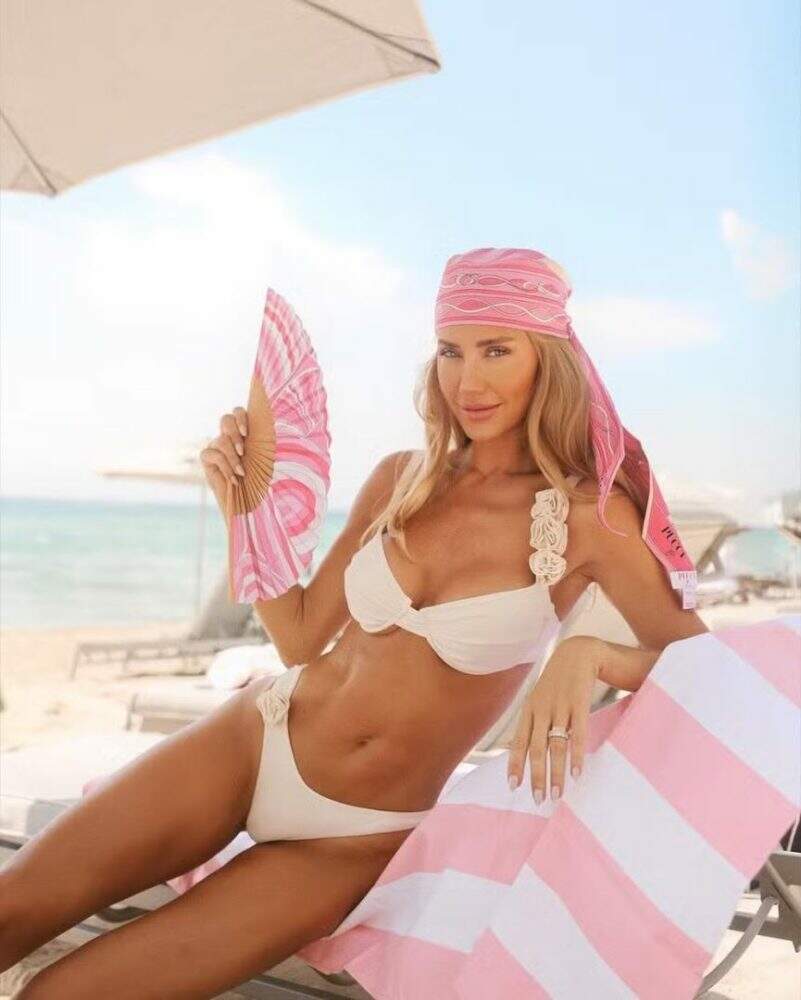 Ana Paula Siebert continua de férias em Miami, na Flórida (EUA), onde ela e Roberto Justus têm um apartamento de frente para a praia e, nesta quarta-feira (9), a influenciadora de 37 anos aproveitou para atualizar o bronzeado de biquíni branco. Com acessórios cor-de-rosa da Pucci, Ana Paula registrou o momento em seu Instagram.
