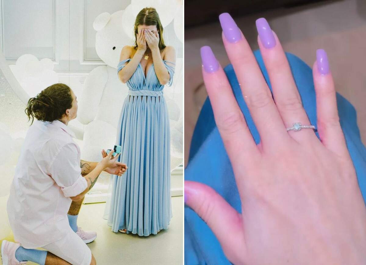 O humorista pediu a estudante de Engenharia Civil em casamento durante a festa. Em seu perfil, ela falou sobre como se sentiu com tantas emoções.
