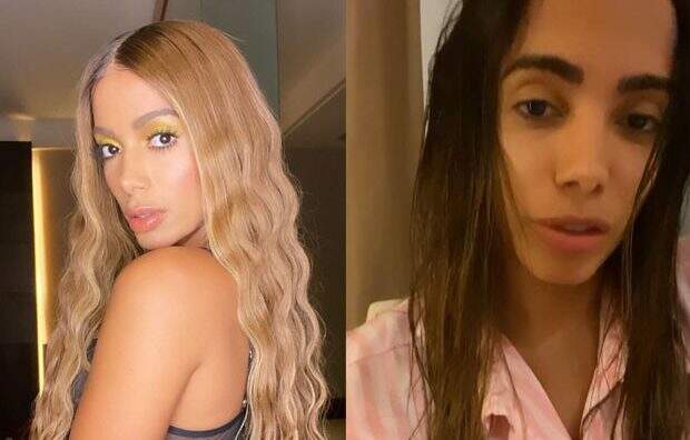 “Agora a mona se desmontou. Toma susto não”, escreveu Anitta. “Tirei a peruca, os cílios e o reboco da cara. Outro ser humano. Adeus”, completou ela, “de cara limpa”.