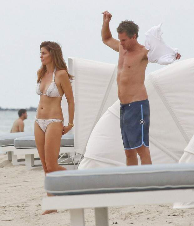 Ela e o marido, Rande Gerber, curtiram as areias de Miami na tarde de segunda-feira (5) e a modelo, que é mãe de Presley Gerber, de 16, e Kaia Gerber, de 14, mostrou que não deixa a peteca cair quando o assunto é a ótima forma.