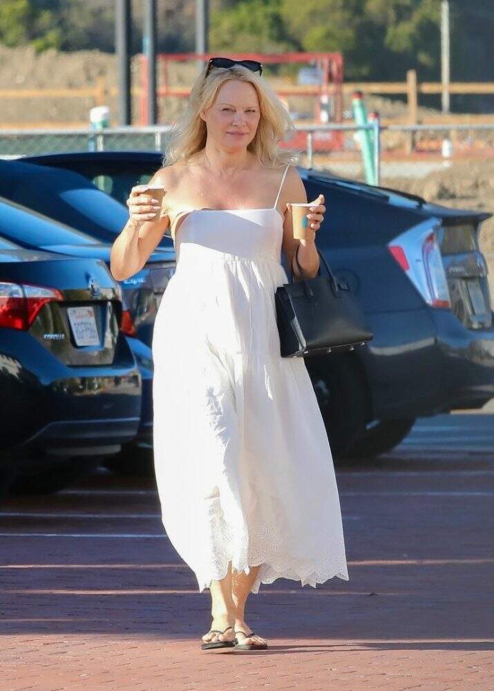 Aos 54 anos, a loira estava com um vestido longo de alcinha e com dois cafés nas mãos quando foi alvo das lentes atentas dos paparazzi. Recentemente, Pamela, que se casou com seu atual marido no ano passado, conseguiu vender sua mansão por 61 milhões de reais.