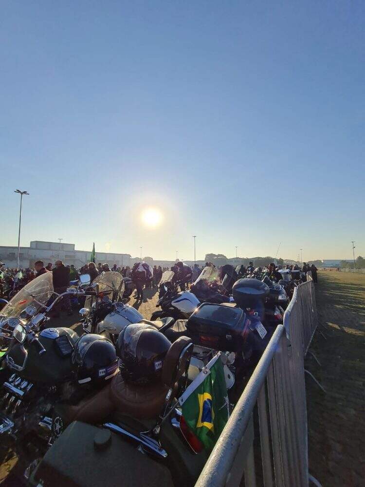 Apoiadores do presidente Jair Bolsonaro se reuniram desde cedo, neste sábado (10), para uma concentração em frente à Fiergs (Federação das Indústrias do Estado do Rio Grande do Sul), ponto de partida para a “motociata” em Porto Alegre.