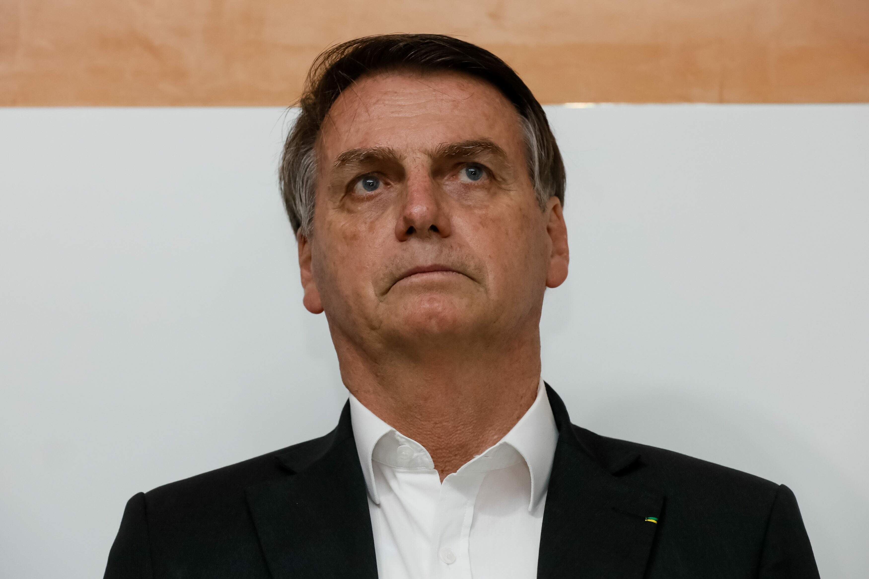 Bolsonaro ouviu em silêncio e, menos de um minuto depois, cochichou ao ouvido do ministro da Educação, Abraham Weintraub, que estava sentado ao seu lado. Após a conversa, olhou para a frente e baixou a cabeça.