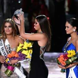 “É meu erro”, afirmou Harvey, acrescentando ao vivo que assumia “toda a responsabilidade” sobre o equívoco e mostrou à câmera o conteúdo do cartão. A ganhadora herdou a coroa da colombiana Paulina Vega, vencedora do concurso em 2014.