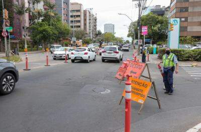 O trânsito está parcialmente bloqueado na avenida devido a obras de macrodrenagem do arroio Areia, na Zona Norte da Capital. Segundo a prefeitura, a previsão é de que ocorra a liberação total do tráfego até o fim deste mês.
